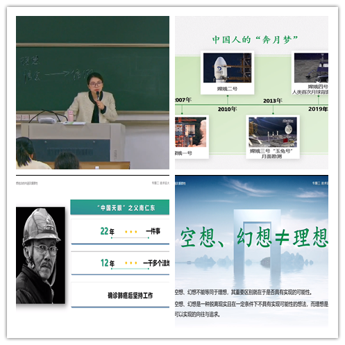 教师严格教学管理,上课开始用学习通二维码签到,没签到的点名确认情况,要求下次课补请假条。注意新旧知识的连贯性,复习上次课留下的三个思考讨论题,提醒学生注意平时学习要认真,在课本中标记好问题出现的页码,方便日后复习。本节课重点内容是理想和信念,教师主要讲了理想和信念的内涵、特征、类型和功能等,重点突出、讲解全面、有条理,一环扣一环,知识点过渡自然,PPT制作简洁醒目,卡通图片生动形象,能很好说明问题。教师不是干巴巴地说教,而是不时利用自己亲身经历、身边事物、社会新闻、电影和寓言故事、伟大人物的事迹等来讲解,举例丰富,帮助学生理解,并将社会上的一些常见说法拿出来让学生思考。教师上课语言表达清晰、语气亲切柔和,能够关注学生的听课反应,配以手势表情比较好地抓住学生的注意力,前面几排的学生听课相当认真,能跟着老师上课的节奏有所回应。