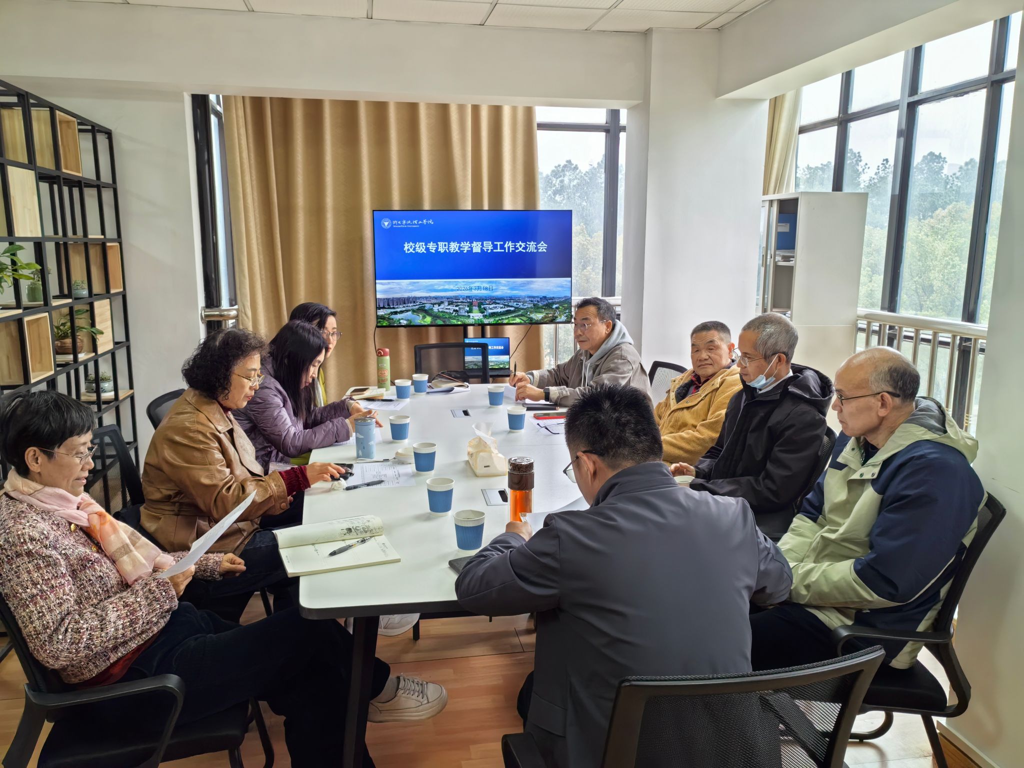 3月18日上午,学校在行政楼308督导组办公室组织召开本学期首次校级专职教学督导工作交流会。会议由评估中心主任廖海鹏主持,全体本科校级专职教学督导和评估中心工作人员参加会议。